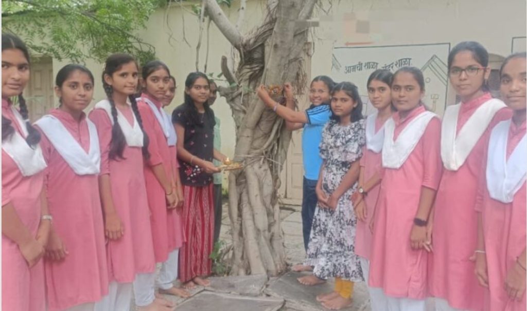 विद्यार्थिनींनी झाडांना राख्या बांधून दिला पर्यावरण रक्षणाचा संदेश.