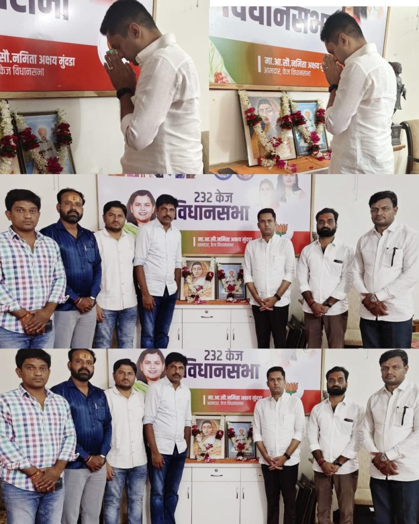 आज अक्षय निवास येथे राष्ट्रसंत भगवान बाबा जयंती आणि पुण्यश्लोक राजमाता अहिल्यादेवी होळकर पुण्यतिथी निमित्त त्यांच्या प्रतिमेस पुष्पहार अर्पण करून कृतज्ञतापूर्वक अभिवादन करण्यात आले.